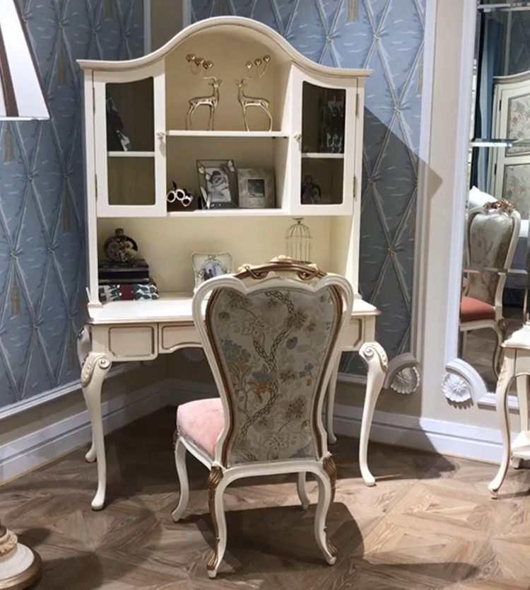 Latest Multifunctional Ivory White Solid Wood Dressing Table/Bookcase